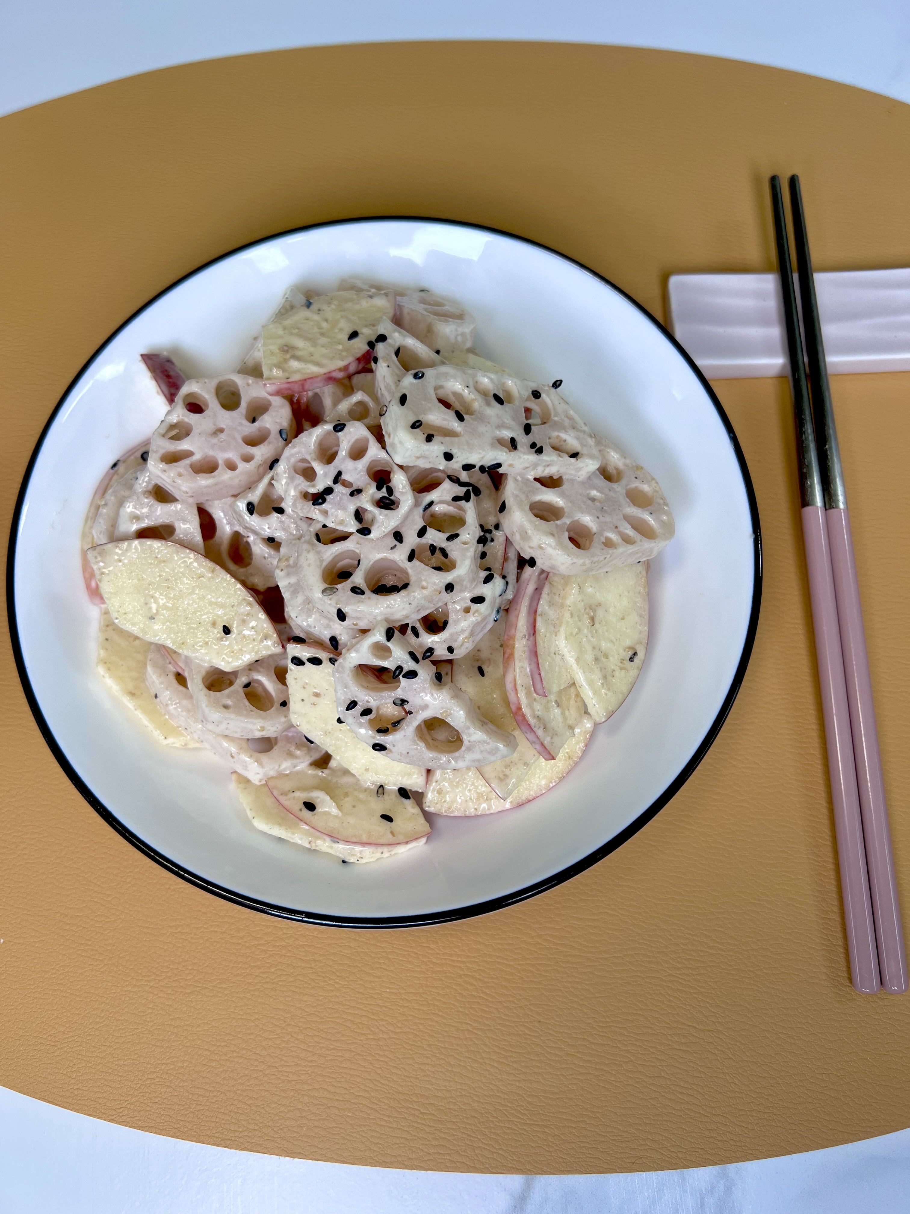 오늘은 고소함 가득한 흑임자(검은깨) 드레싱과 아삭한 연근이 만난,